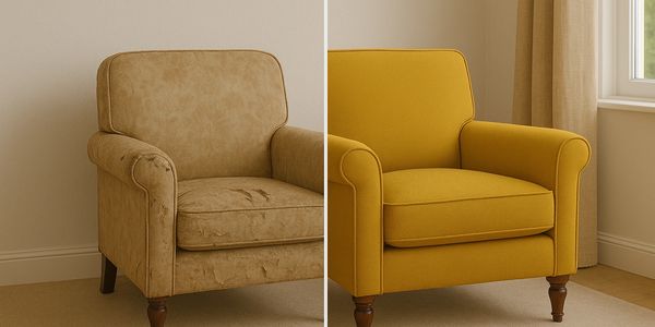 Reupholstering a chair begins with carefully stripping away the worn and torn fabric to reveal the frame and padding beneath. Any necessary repairs are made to the structure or cushioning to ensure comfort and durability. New high-quality fabric is then expertly cut, fitted, and hand-stitched or tacked into place, giving the chair a fresh, tailored finish. The result is a beautifully restored piece that not only looks brand new but is also built to last for years to come.